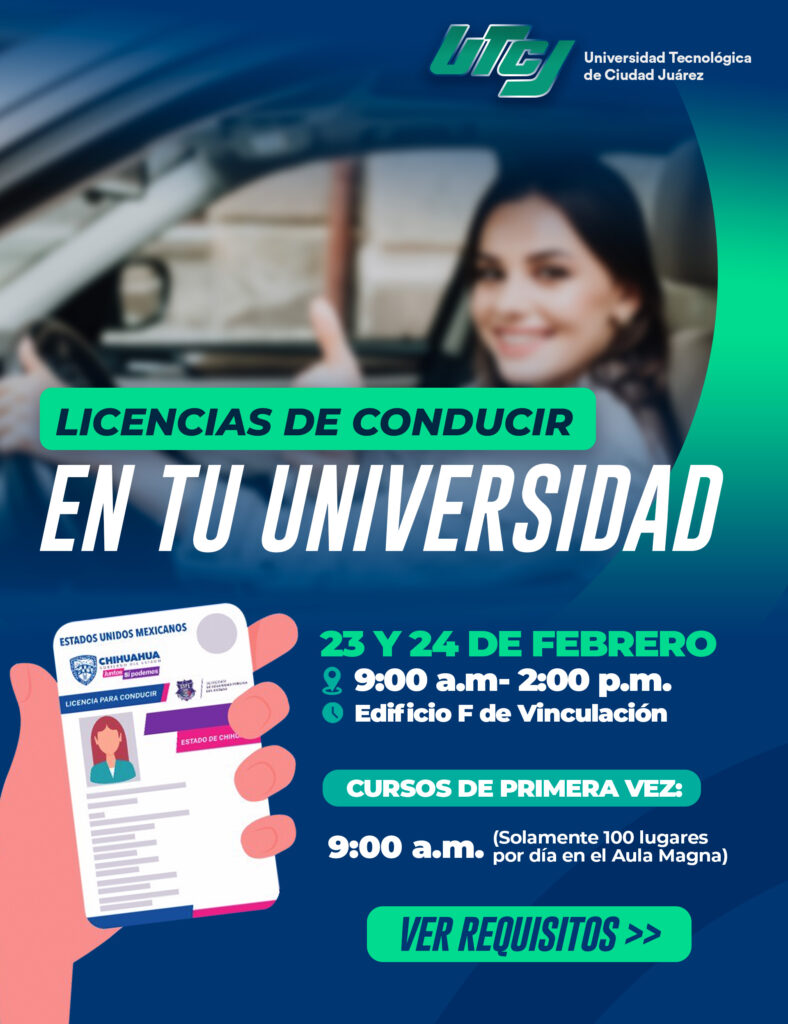 23 y 24 de febrero de 9:00 a.m- 2:00 p.m., Edificio F de Vinculación LICENCIA POR PRIMERA VEZ: REQUISITOS •Acta de Nacimiento•Identificación oficial (INE, pasaporte vigente, cartilla militar o cédula […]