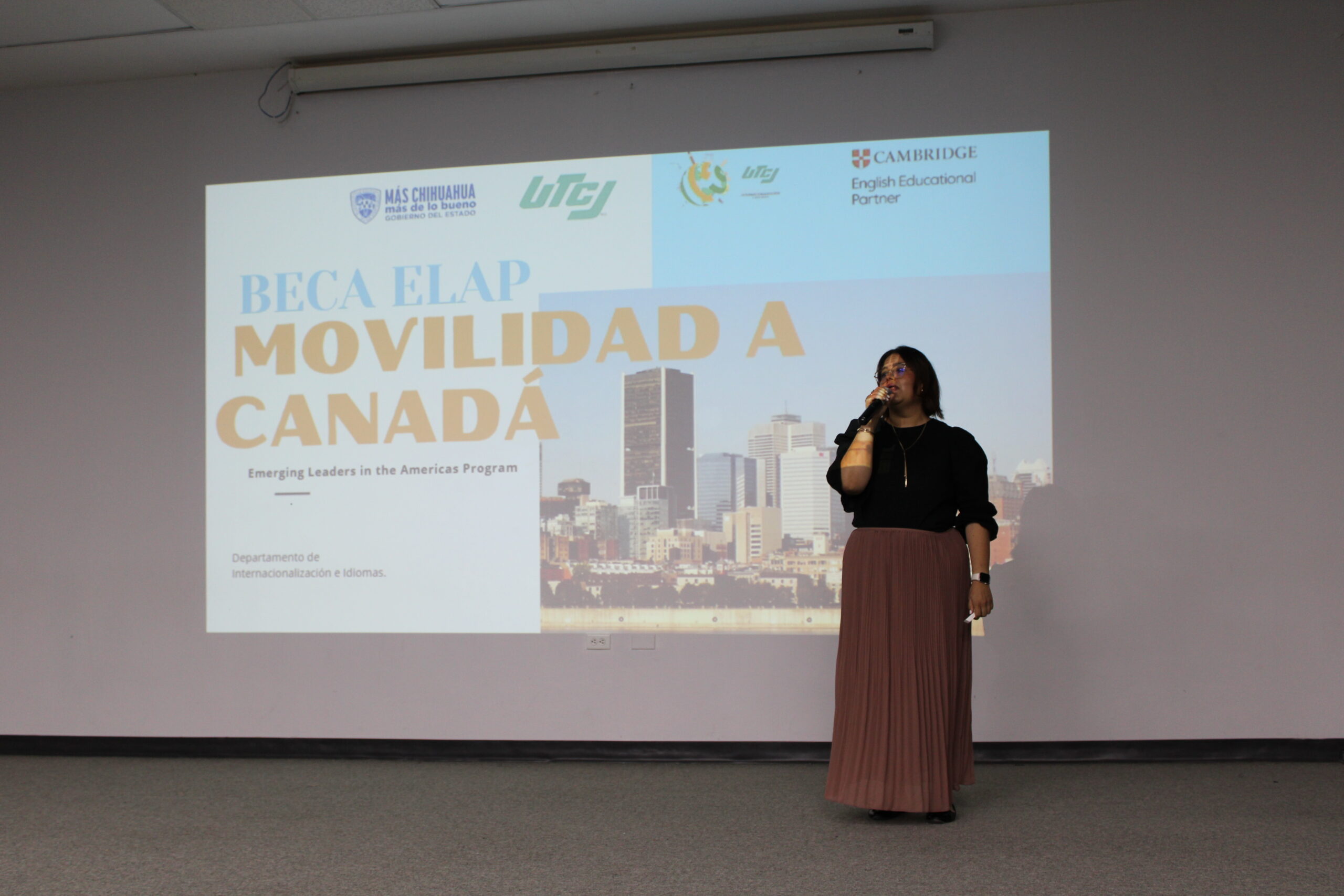 Estudiantes de la Universidad Tecnológica de Ciudad Juárez recibieron esta mañana una plática informativa, respecto a la beca de movilidad a Canadá ELAP, (EMERGING LEAFERS IN THE AMERICAS PROGRAM).